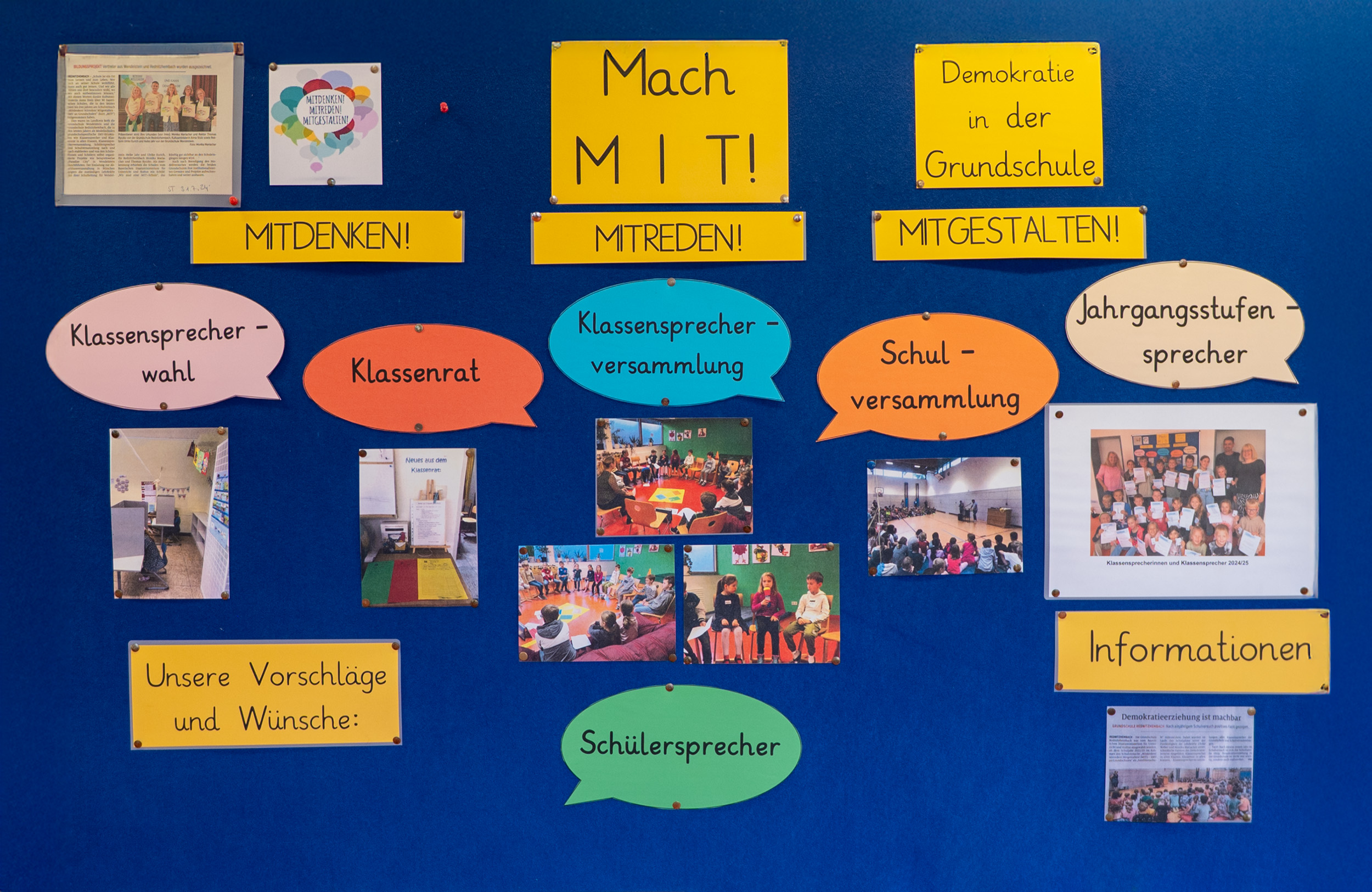Die Grundschule Rednitzhembach nimmt seit dem Schuljahr 2022/23 aufgrund ihrer Auswahl vom Staatsministerium für Unterricht und Kultus am Schulversuch „Mitdenken! Mitreden! Mitgestalten! (MIT!) – SMV an Grundschulen“ teilzunehmen. Zuständige Lehrkräfte sind an der Schule Frau Weber und Frau Mariacher.