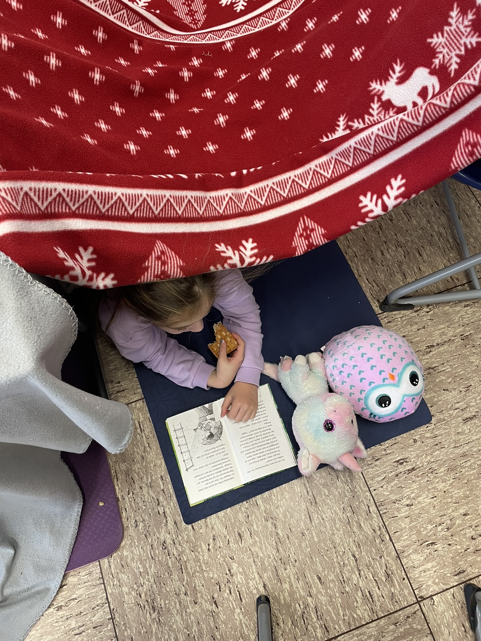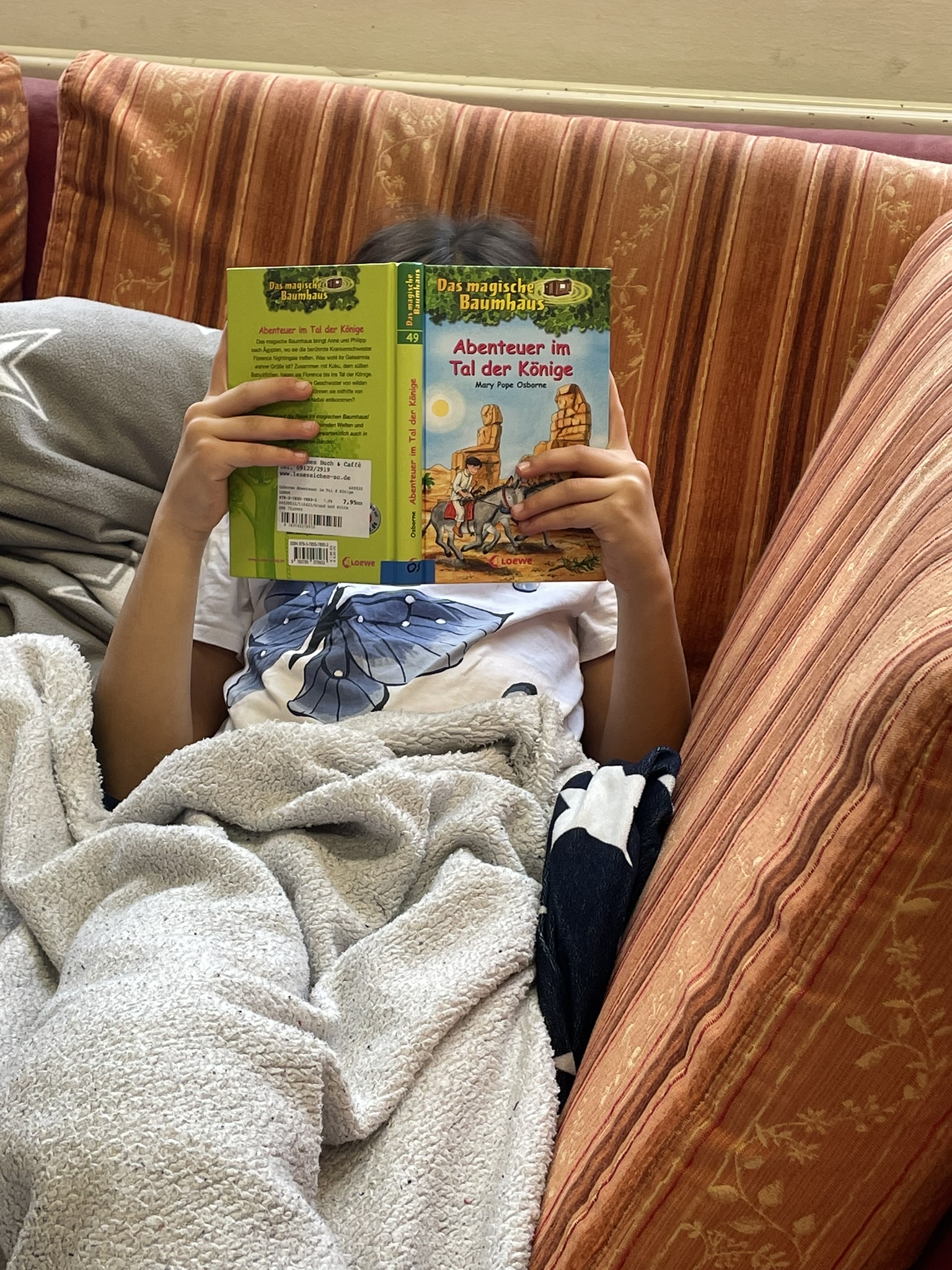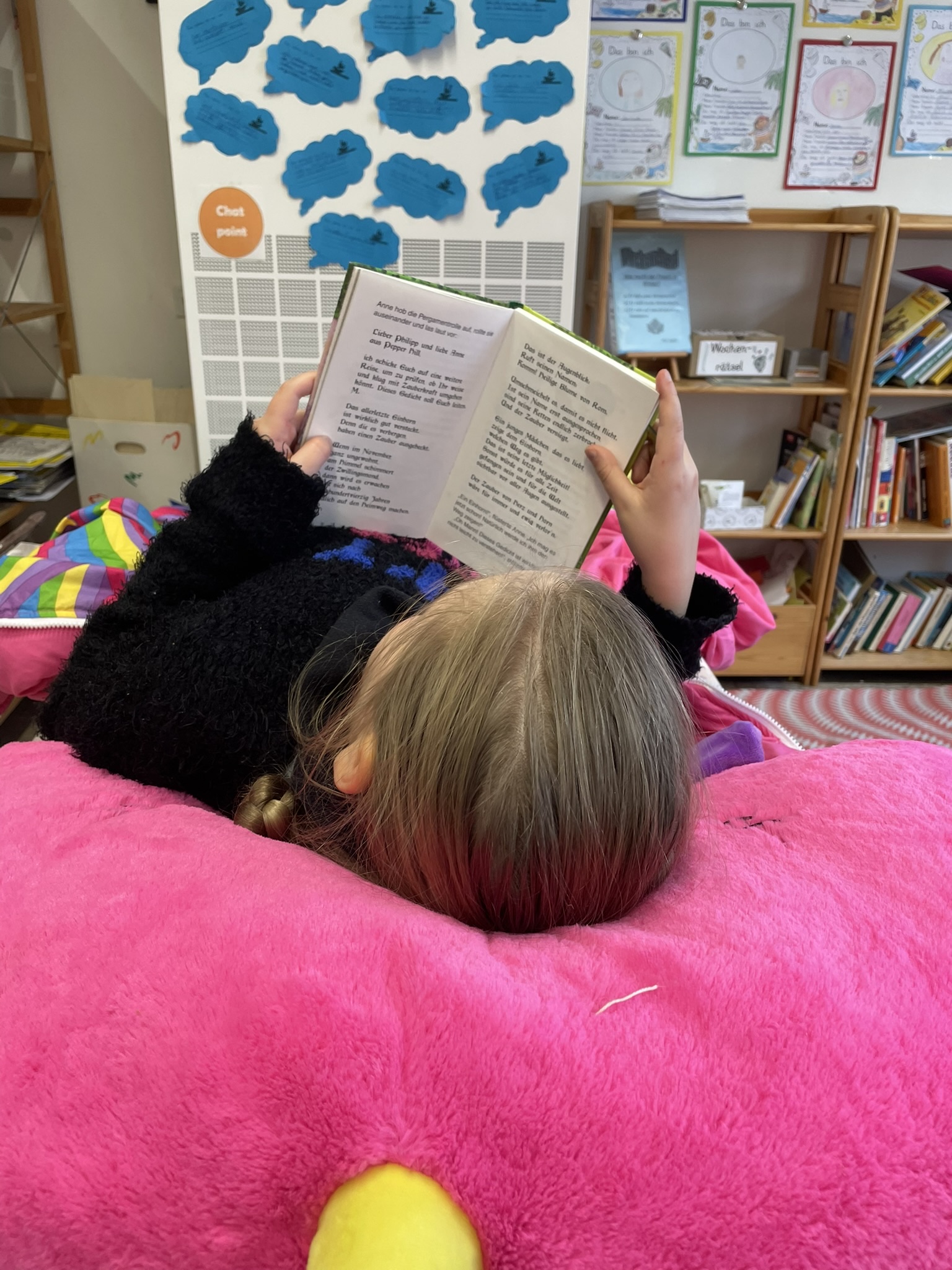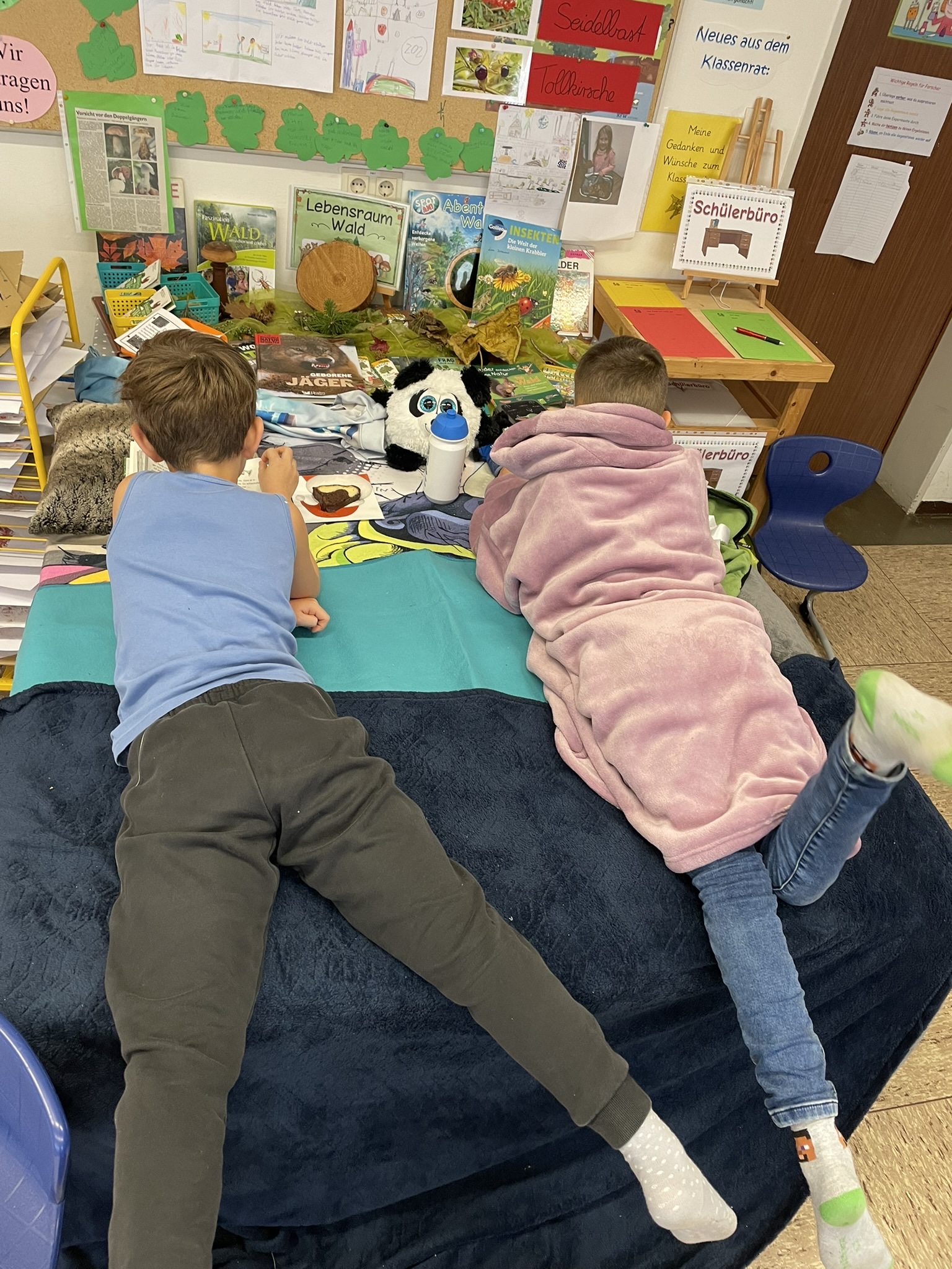 Der diesjährige bundesweite Vorlesetag, der am Freitag, den 21.11.25 stattfand, stand in der Klasse 3c unter dem Motto „Eine Reise mit dem „Magischen Baumhaus“. Das Klassenzimmer wurde in einen magischen Leseraum verwandelt, in dem aus Tischen, Stühlen, Decken und Kissen kleine Baumhäuser gebaut wurden. Jedes Kind suchte sich ein Buch aus der Buchreihe „Das magische Baumhaus“ aus und verkroch sich in sein eigenes „Baumhaus“. Unterbrochen wurde das Selberlesen durch mehrere Vorlesephasen, in denen unter anderem Herr Ryczko als Gastleser den Kindern aus einem Buch der Buchreihe vorlas. Für das leibliche Wohl sorgten die Klasseneltern, die ein kleines Buffet spendierten. Der Vorlesetag war für die Kinder eine wunderbare Abwechslung im Schulalltag.