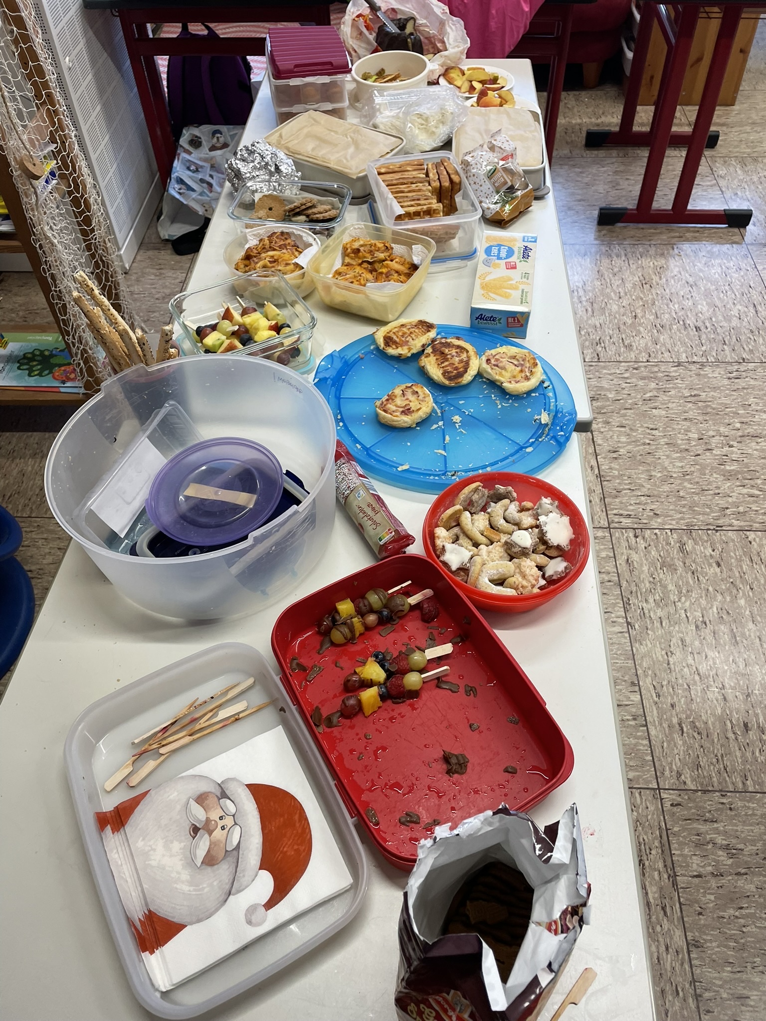 Anlass war eine gelungene Brotboxaktion, die traditionell jedes Jahr vom Landkreis gestiftet wird. Für einen energiereichen Start in den Schultag stand ein reichhaltiges Buffet bereit. Die Kinder stärkten sich mit Vollkornbrot, das mit hausgemachter Marmelade und Honig bestrichen werden konnte. Auch der aus Äpfeln von Streuobstwiesen der Umgebung gemostete Apfelsaft war heiß begehrt.